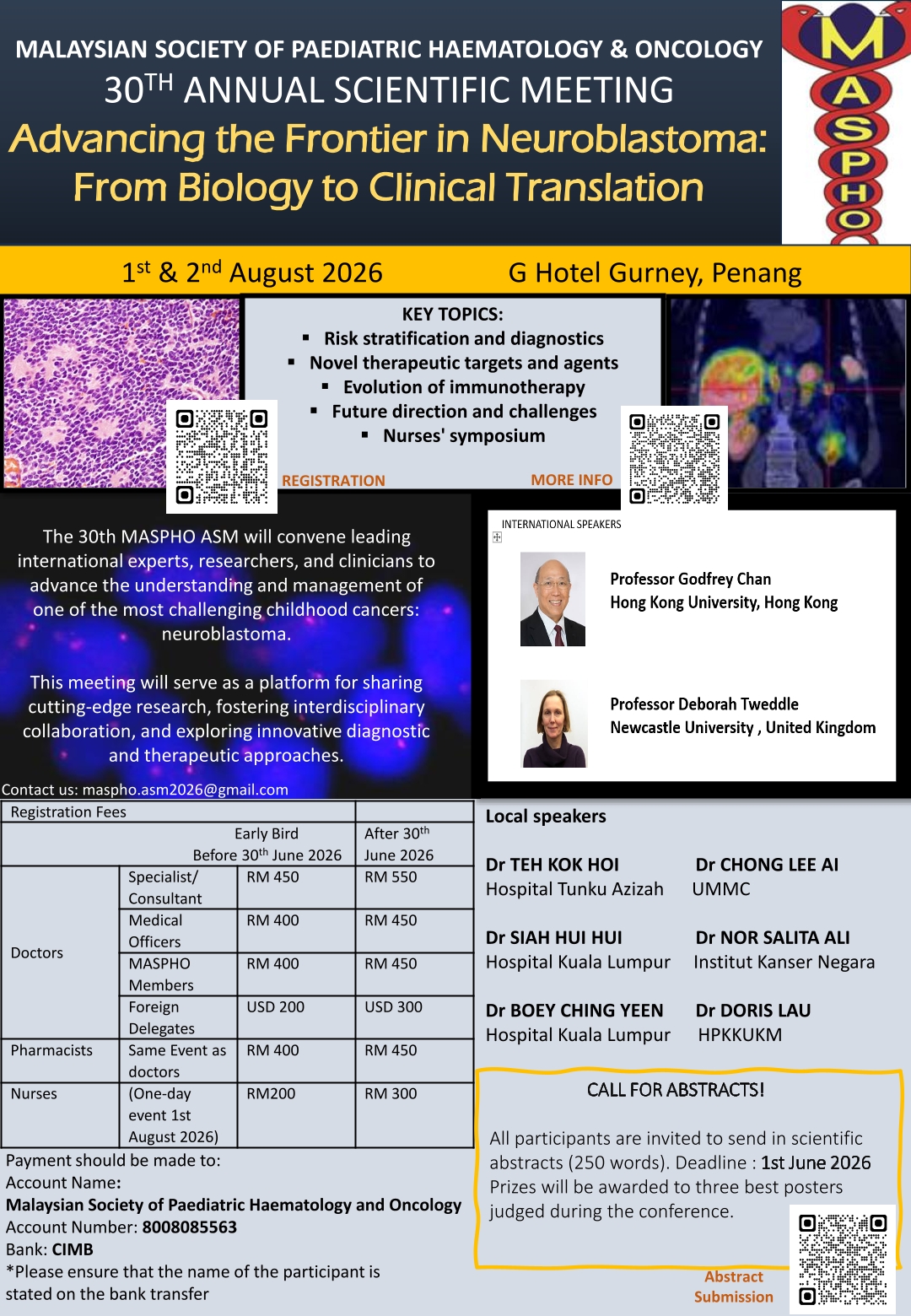 The Malaysian Society of Paediatric Haematology and Oncology (MASPHO) was formed in 1994.
